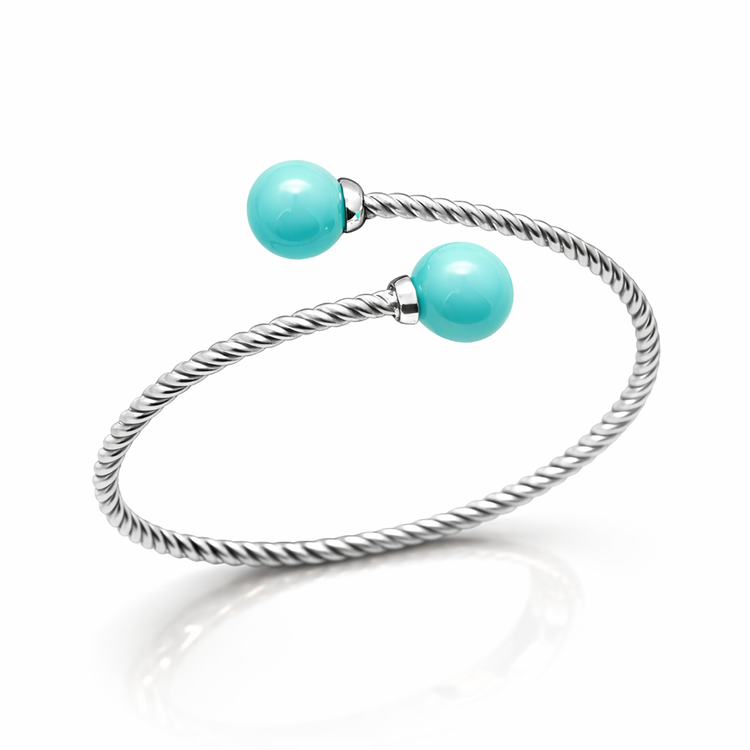 این دستبند نقره عیار ۹۲۵، یکی از جواهرات دستساز و نفیس وبسایت آرتیسان گلد است که با طراحی مینیمال و الهامگرفته از هنر سنتی ایرانی، ترکیبی بینظیر از زیبایی و اصالت را به نمایش میگذارد. بدنه دستبند از نقره استرلینگ عیار ۹۲۵ ساخته شده که حاوی ۹۲.۵% نقره خالص و ۷.۵% آلیاژهای مقاوم مانند مس است، تا دوام بالا و درخشندگی طولانیمدت را تضمین کند – بدون اینکه نرمی نقره خالص باعث تغییر شکل شود. طراحی آن به صورت باز و مارپیچی (طرح تورک) است که به راحتی روی مچ دست قرار میگیرد و با دو توپ فیروزه آبیرنگ سنتاتیک تزئین شده؛ این توپها با قطر حدود ۸-۱۰ میلیمتر، نمادی از آرامش و حفاظت در فرهنگ ایرانی هستند و وزن کلی دستبند را به حدود ۱۰-۱۵ گرم میرسانند. فیروزه نه تنها زیبایی بصری خیرهکنندهای به دستبند میبخشد، بلکه با خواص درمانی مانند کاهش استرس و افزایش انرژی، آن را به زیورآلاتی معنادار تبدیل کرده است. این محصول با آبکاری رودیوم برای جلوگیری از تیره شدن، گواهی اصالت و بستهبندی لوکس عرضه میشود