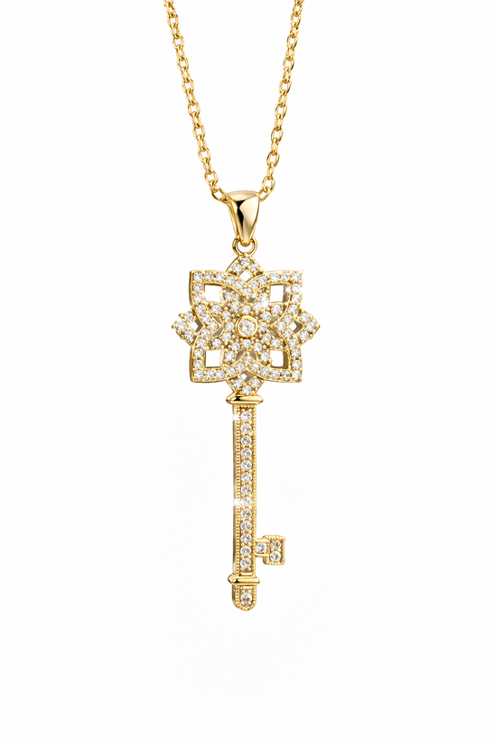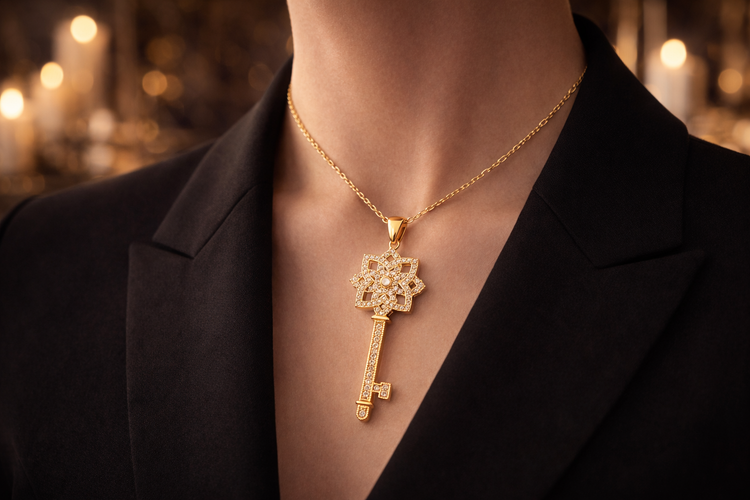 گردنبند «کلید اقبال» ترکیبی از طراحی نمادین و ظرافت جواهر است؛ کلیدی که قرار نیست فقط روی گردن بدرخشد، قرار است معنا داشته باشد.