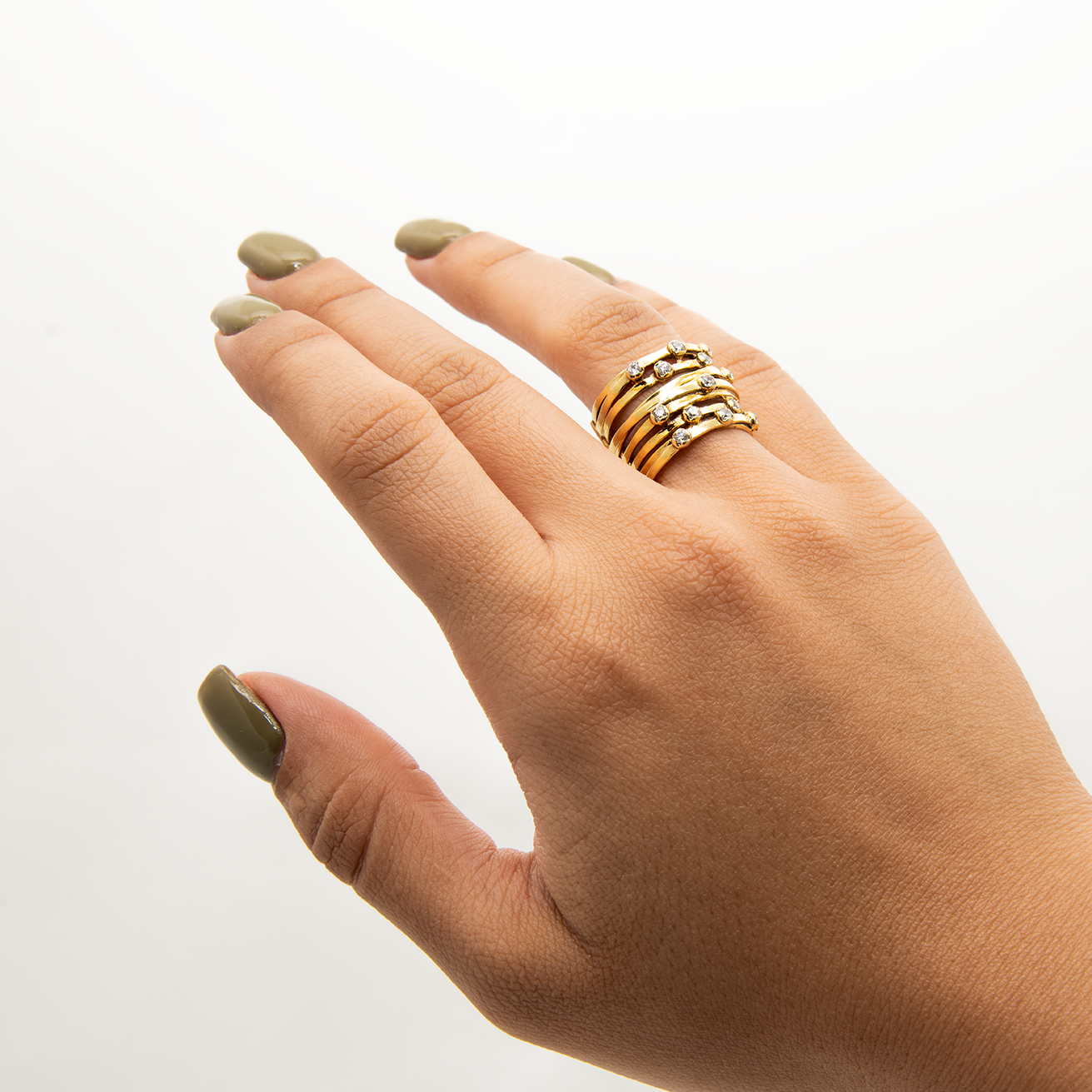انگشتر جواهر نقره عیار ۹۲۵ از مجموعه با شکوه آرتیسان گلد، اثری بینظیر از هنر جواهرسازی است که با طراحی چندلایه و تزئینات الماسمانند، جلوهای خیرهکننده به دستان شما میبخشد. این انگشتر از نقره خالص عیار ۹۲۵ (۹۲.۵ درصد نقره) ساخته شده و با ترکیب چندین حلقه ظریف که با سنگهای براق تزئین شدهاند، نمادی از elegance و sophistication را به نمایش میگذارد. درخشش نقره سفید همراه با سنگهای درخشان، این انگشتر را به گزینهای ایدهآل برای مجالس رسمی، عروسی یا به عنوان هدیه لوکس جواهر تبدیل کرده است. طراحی ارگونومیک و وزن متعادل (حدود ۴-۶ گرم بسته به سایز) آن، راحتی را در کنار زیبایی تضمین میکند.