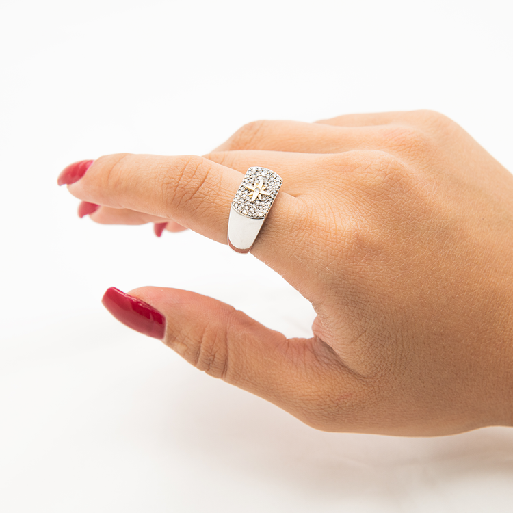 انگشتر نقره ۹۲۵ ستاره خورشیدی لوکس | جواهرات دستساز اصیل با نگینهای الماسی