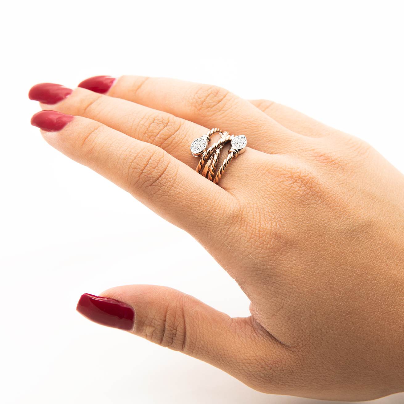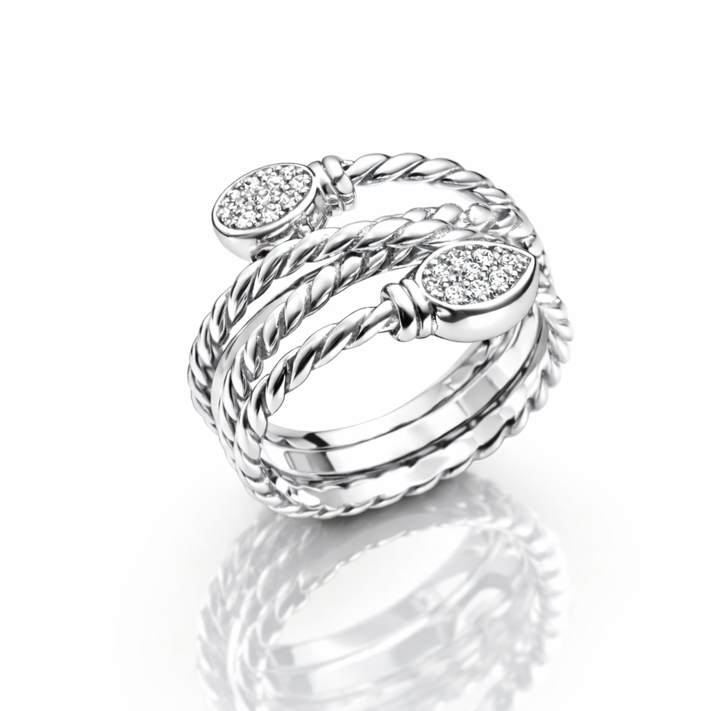 انگشتر نقره زنانه طرح اسپیرال عیار۹۲۵ با سنگهای زیرکونیا