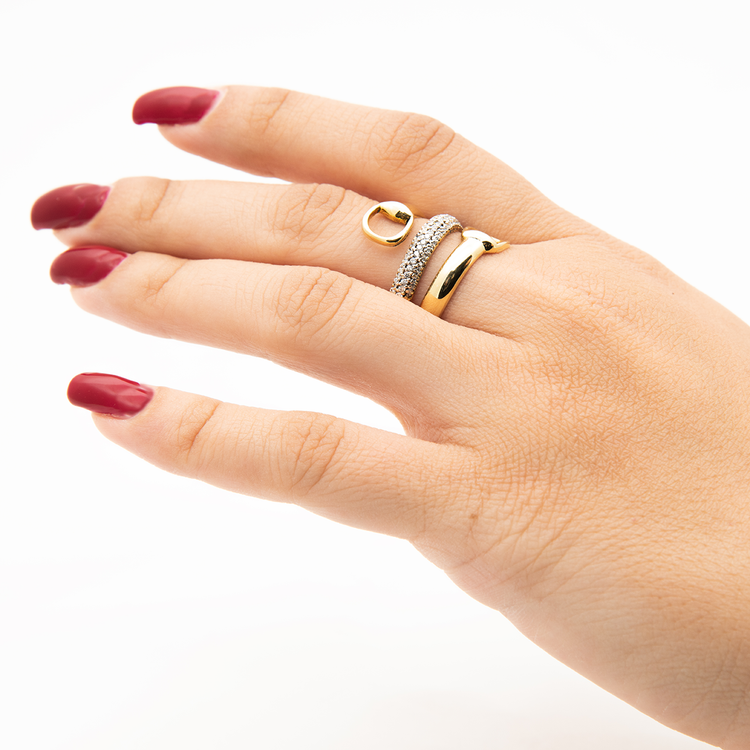 این انگشتر نقره عیار ۹۲۵ با طراحی لوکس و الهامگرفته از برندهای مد جهانی، ترکیبی از ظرافت و مدرنیته است. شامل دو بخش: حلقه طلاییرنگ با لوگوی GG (دو حلقه درهمتنیده) و حلقه نقرهای با نگینهای ریز برلیانمانند (زیرکونیا شفاف) که درخششی خیرهکننده ایجاد میکند. وزن تقریبی ۴-۶ گرم و سایز قابل تنظیم، آن را برای استایلهای مینیمال، مهمانیها یا ست کردن با دستبندها ایدهآل میسازد. این انگشتر نقره زنانه برای بانوان مدگرا، علاقهمندان به جواهرات لوگودار و کسانی که هدیهای شیک و خاص برای مناسبتهای روزمره میخواهند، مناسب است.