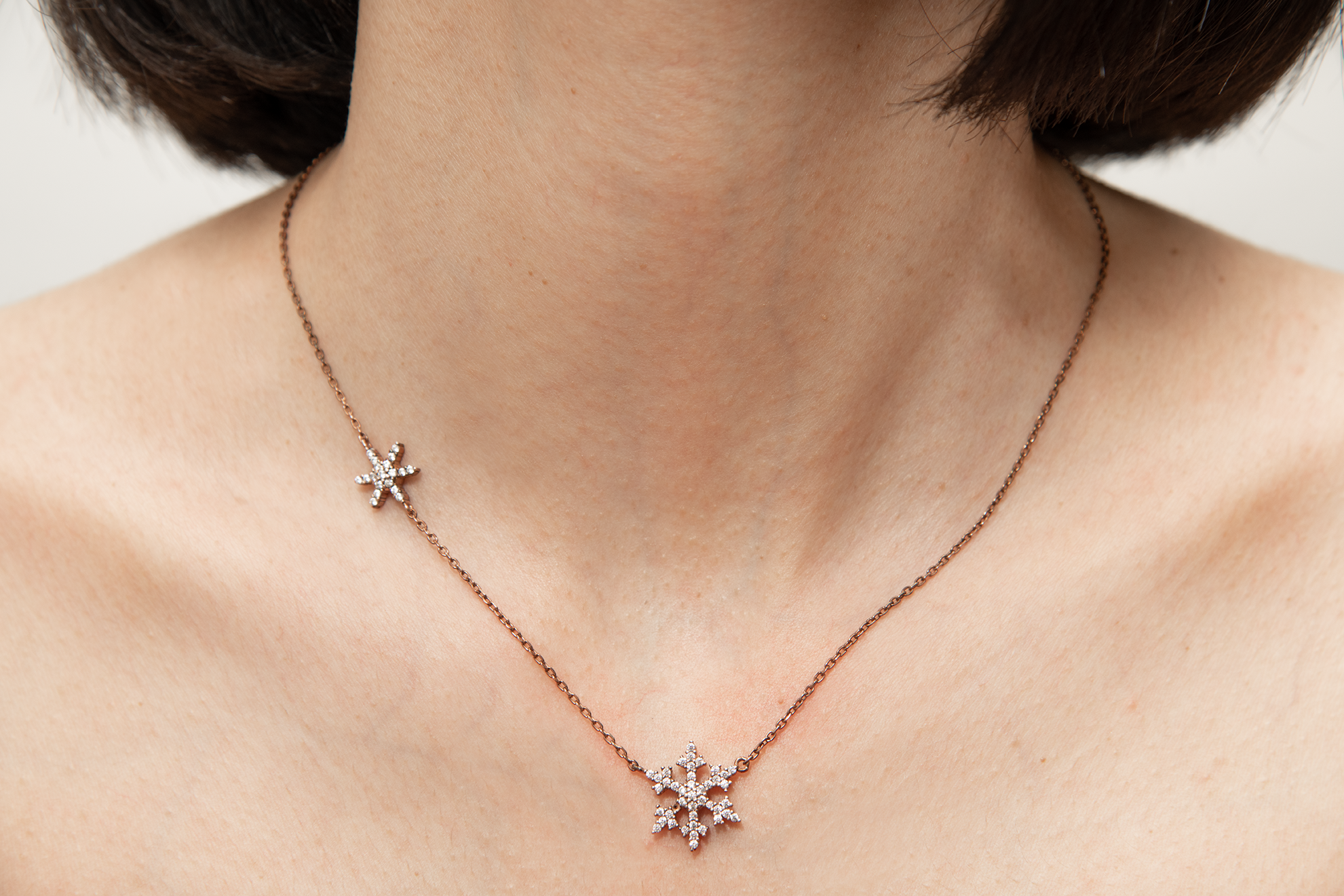 در مجموعه زیورآلات فصلی و مینیمال آرتیسان گلد، آویز برف ستارهای نقره عیار ۹۲۵ همچون کریستالهای برف در شب زمستانی، نماد زیبایی منحصربهفرد، آرامش و شادی فصلی است – ترندی که در ۲۰۲۵ با تمرکز بر طرحهای nature-inspired مانند snowflake motifs و holiday-themed necklaces، توسط طراحانی مانند Chanel در runwayهای زمستانی محبوب شده و سلبریتیهایی چون جنا اورتگا آن را با استایلهای لایهلایه (layering) ست کردهاند. این گردنبند نقره ۹۲۵ آویز برف با دو کریستال برف متقارن و نگینهای pavé درخشان (شبیه الماسهای ریز) روی پرهها، از نقره استرلینگ عیار ۹۲۵ با روکش رزگلد ساخته شده که درخششی گرم و زمستانی به استایل شما میبخشد. وزن سبک (حدود ۳-۴ گرم) و زنجیر قابل تنظیم (۴۰-۴۵ سانتیمتر) آن، راحتی روزانه را تضمین میکند و با روکش ضدحساسیت، برای پوستهای حساس ایدهآل است – همانطور که در ترندهای sterling silver snowflake pendant ۲۰۲۵، تمرکز بر دوام، hypoallergenic و زیبایی timeless بدون تغییر رنگ است.