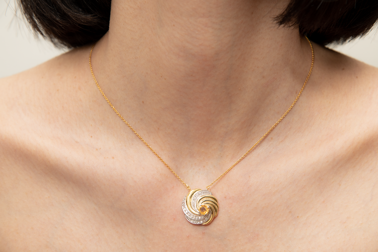 در مجموعه زیورآلات الهامگرفته از طبیعت آرتیسان گلد، آویز صدف سیترین نقره عیار ۹۲۵ همچون صدفی طلایی از اعماق اقیانوس، نماد فراوانی، شادی و زیبایی ارگانیک است – ترندی که در ۲۰۲۵ با تمرکز بر طرحهای nature-inspired مانند waves، shells و gemstone pendants، توسط طراحانی مانند Chanel و Chloé در runwayهای تابستانی محبوب شده و سلبریتیهایی چون گیگی حدید آن را با استایلهای مینیمال ست کردهاند. این گردنبند نقره ۹۲۵ آویز صدف سیترین با قاب موجدار صیقلی، نگین سیترین زرد درخشان در مرکز و کریستالهای pavé (شبیه الماسهای ریز) اطراف، از نقره استرلینگ عیار ۹۲۵ با روکش طلای گرم ساخته شده که درخششی لوکس و طبیعی به استایل شما میبخشد. وزن سبک (حدود ۶-۸گرم) و زنجیر قابل تنظیم (۴۰-۴۵ سانتیمتر) آن، راحتی روزانه را تضمین میکند و با روکش ضدحساسیت، برای پوستهای حساس ایدهآل است – همانطور که در ترندهای sterling silver citrine shell pendant ۲۰۲۵، تمرکز بر دوام، hypoallergenic و زیبایی timeless بدون تغییر رنگ است.