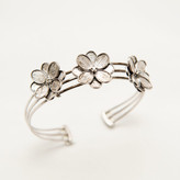 این دستبند نقره عیار ۹۲۵، یکی از زیورآلات دستساز و ظریف وبسایت آرتیسان گلد است که با طراحی الهامگرفته از طبیعت، زیبایی و لطافت گلها را به تصویر میکشد. بدنه دستبند از نقره استرلینگ عیار ۹۲۵ ساخته شده (۹۲.۵% نقره خالص با آلیاژهای مقاوم برای دوام بیشتر) و با آبکاری رزگلد برای رنگ گرم و جذاب، ظاهری لوکس و مدرن به آن بخشیده است. طراحی آن به صورت باز (کاف) است که به راحتی روی مچ قرار میگیرد و با سه گل ظریف (شبیه به گلهای پلومریا یا دیزی) تزئین شده؛ هر گل با گلبرگهای بافتدار و یک نگین کریستالی کوچک در مرکز، درخششی خیرهکننده ایجاد میکند. این نگینها احتمالاً کریستال سواروسکی یا الماس مصنوعی هستند که نمادی از شکوفایی و زنانگی به حساب میآیند. وزن تقریبی ۱۰-۱۵ گرم، سایز قابل تنظیم (۱۵-۱۸ سانتیمتر) و با گواهی اصالت عرضه میشود و با بستهبندی شیک برای هدیه مناسب است.