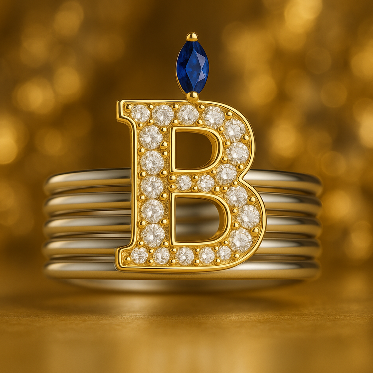 در این انگشتر، حرف اول اسم شما بهصورت لوکس روی حلقه قرار میگیرد و بالای آن یک سنگ رنگی بر اساس ماه تولد مینشیند؛ ترکیبی کاملاً شخصی برای هدیهدادن به خودتان یا عزیزتان.